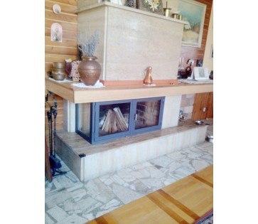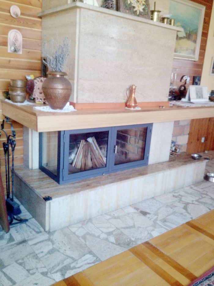 Nainstalovaná dvoukřídlá dvířka s proskleným pevným bokem do stávajícího krbu.